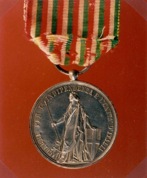 - NOTIZIE STORICO CRITICHE PERIODO STORICO: REGNO D'ITALIA\nDATA MERITO: 1859\nEVENTO: GUERRE PER L'INDIPENDENZA E L'UNITA' D'ITALIA\nNOME INSIGNITO: \nQUALIFICA: \nLUOGO EVENTO: \nLUOGO E DATA CONFERIMENTO: \nL'ART. 4 DEL R.D. 2174 DEL 1865/03/04 RECITA CHE "IL NASTRO NON POTRA' ESSERE PORTATO DISGIUNTO DALLA MEDAGLIA". UN ALTRO R.D., IL NR. 6 DEL DICEMBRE 1866, SANCISCE CHE :" TUTTI COLORO CHE HANNO DIRITTO AL COMPUTO DELLA CAMPAGNA DEL 1866 SONO AUTORIZZATI A FREGIARSI DELLA MEDAGLIA ...ISTITUITA CON DECRETO 4 MARZO 1865"