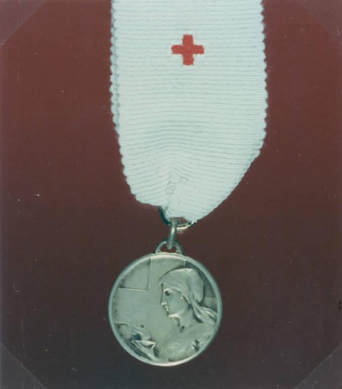 R: ALLEGORIA DELLA CARITA'; V: CROCE DI GINEVRA, ISCRIZIONE. R: FIGURA MULIEBRE A MEZZO BUSTO CHE REGGE UN LUME ACCESO, CROCE, ISCRIZIONE; V: CROCE, ISCRIZIONE