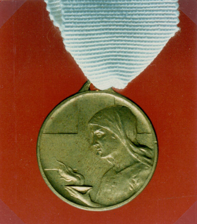 R: ALLEGORIA DELLA CARITA'; V: CROCE DI GINEVRA. R: FIGURA MULIEBRE A MEZZO BUSTO CHE REGGE UN LUME ACCESO, CROCE, ISCRIZIONE; V: CROCE, ISCRIZIONE