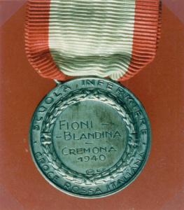 - NOTIZIE STORICO CRITICHE PERIODO STORICO: REGNO D'ITALIA\nDATA MERITO: 1940\nEVENTO: SUPERAMENTO CORSO TRIENNALE SCUOLA INFERMIERE C.R.I.\nNOME INSIGNITO: FIONI BLANDINA\nQUALIFICA: INFERMIERA VOLONTARIA\nLUOGO EVENTO: CREMONA\nLUOGO E DATA CONFERIMENTO: