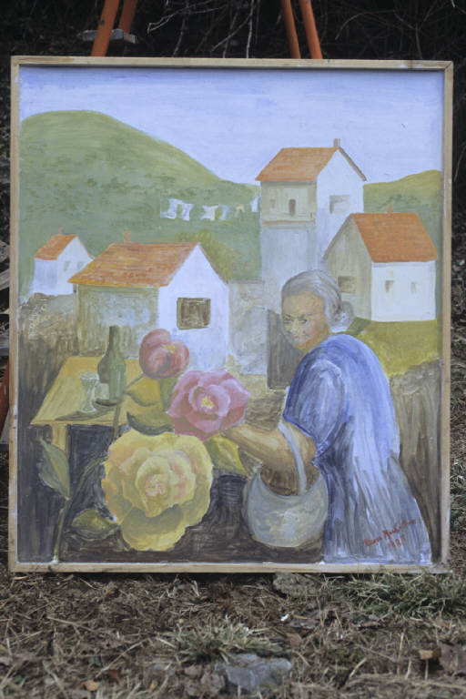 Donna con fiori, all'aperto