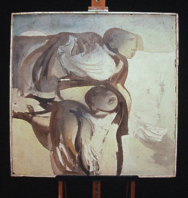 Affresco eseguito su formella di truciolato ricoperta di intonaco con intelaiatura in legno.