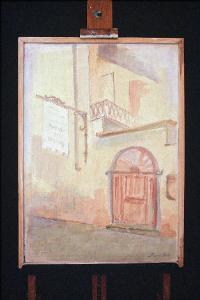 - NOTIZIE STORICO CRITICHE L'affresco rappresenta una strada di Arcumeggia e la Bottega del Pittore.