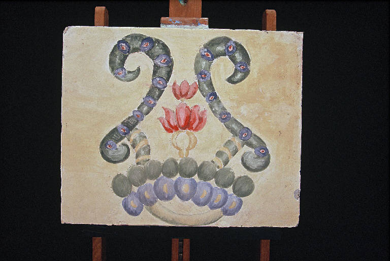 - NOTIZIE STORICO CRITICHE Al centro compare un fiore rosso stilizzato, ai lati dei girali verdi con fiorellini.