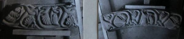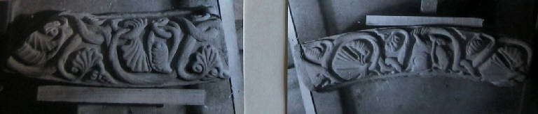Frammento di ghiera con con decorazioni vegetali e animali scolpiti.