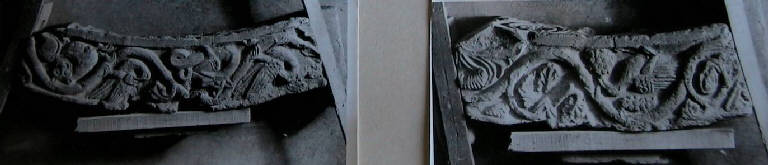 Frammento di ghiera con decorazioni vegetali e raffigurazioni scolpite di animali.