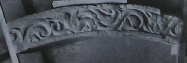 Frammento di ghiera con decorazioni vegetali e animali scolpiti.