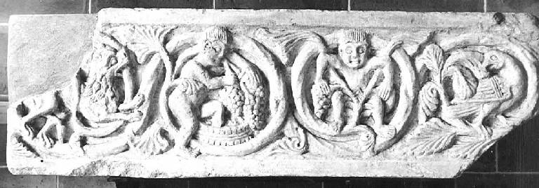Figure di uomini e animali tra i girali di un tralcio
