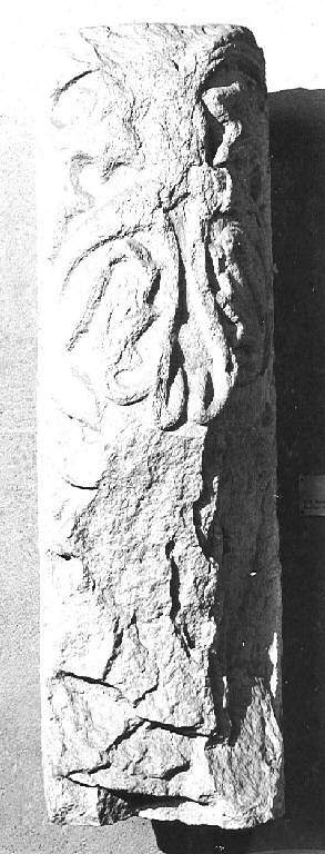 Frammento di cordonatura semicircolare con sculture.