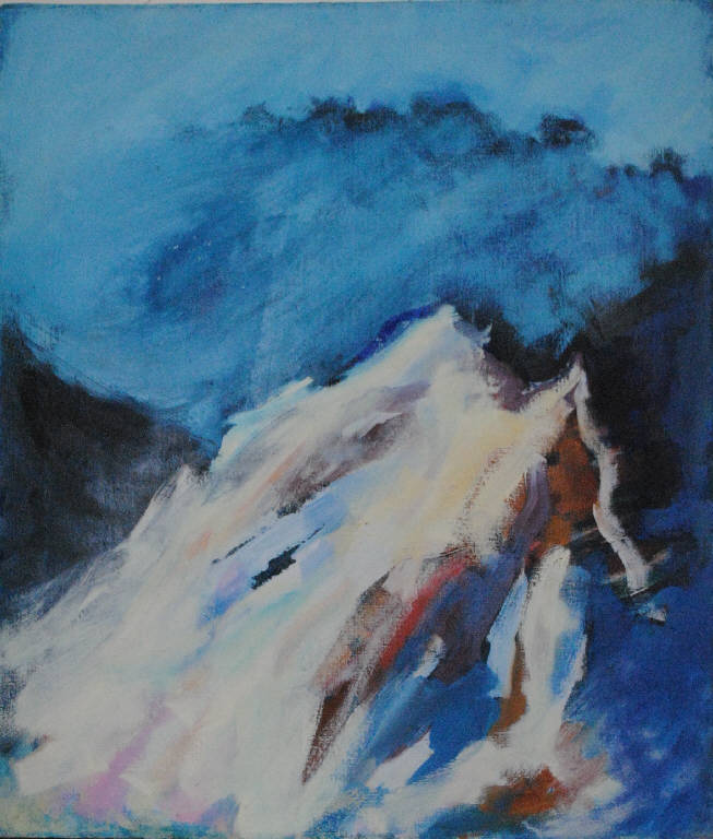 Il soggetto rappresenta l'Aiguille Blanche de Peuterey, montagna italiana del massiccio del Monte Bianco, che si staglia sull'azzurro-blu del cielo. I colori prevalenti sono il bianco e l'azzurro. Probabilmente l'opera fa parte della serie delle "montagne".