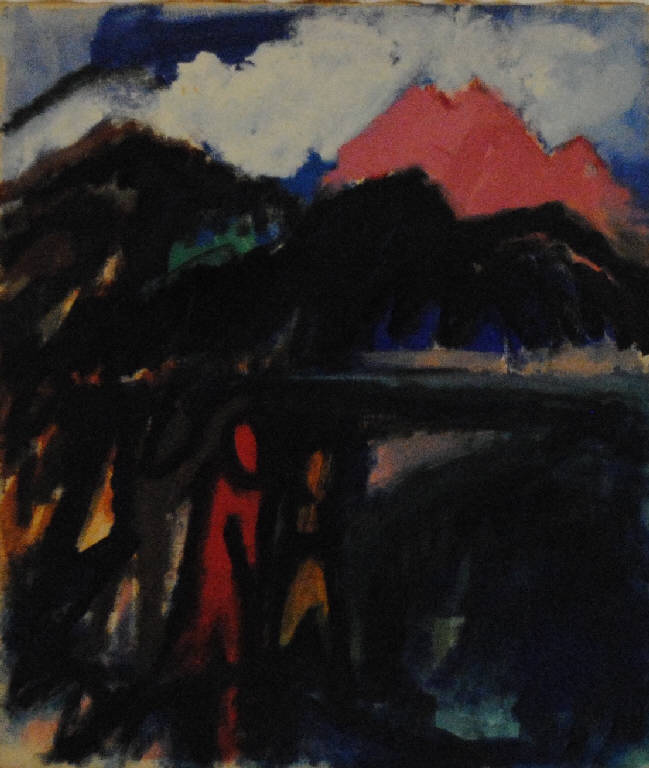 L'opera rappresenta, in maniera stilizzata, un paesaggio montano con figure umane in primo piano in cui domina il nero.