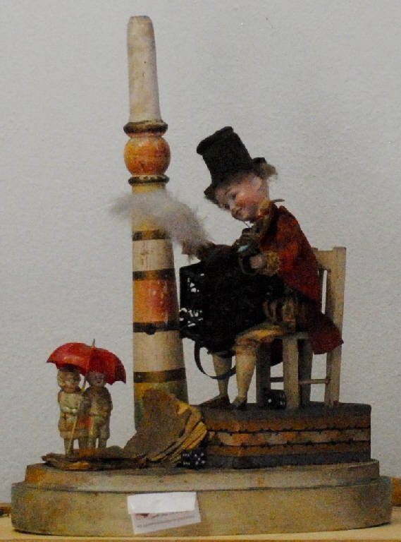 Opera composta da una base ovale di legno su cui si articola una scena: un musicista (il Mozartino), seduto su una sedia, aziona una "macchina inutile"; ai suoi piedi si trovano due dadi, un libro aperto su cui è stampato un dialogo tra "Il Marchese" e "La Duchessa" e due personaggi, un maschio e una femmina, di piccole dimensioni stanti sotto un ombrello. In secondo piano si eleva una torre. Tutta la composizione è protetta da una campana di vetro.