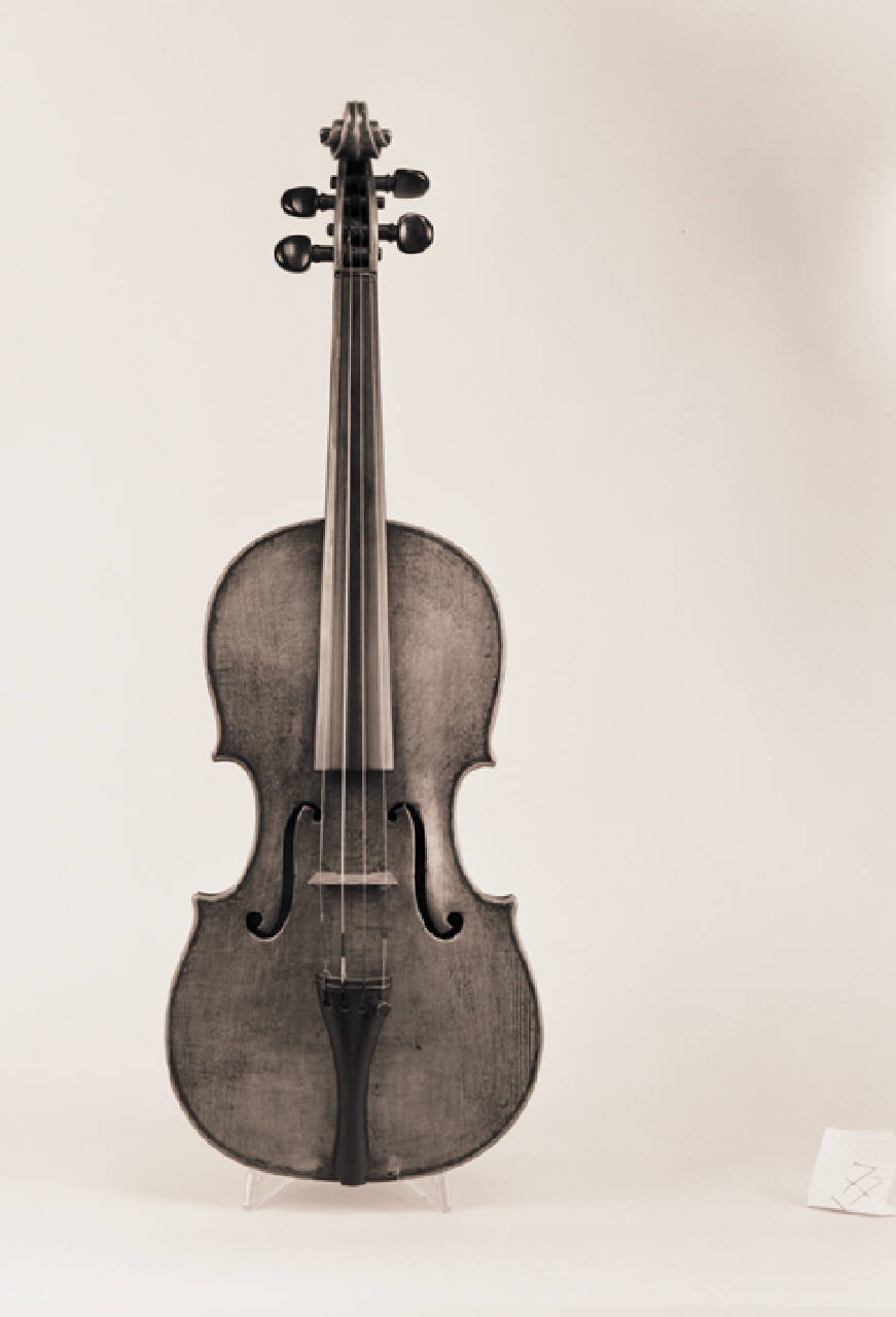 Il modello della cassa di questo strumento segue i modelli classici della scuola italiana, in particolar modo milanese; chi ha rimodellato la tavola ha interpretato il violino secondo un modello da Guarneri del Gesù ed ha intagliato i fori armonici nello stile di questo autore. La scelta è arbitraria, dal momento che non si riscontrano in nessuna altra parte della cassa e della testa elementi stilistici che la giustifichino L'autore del rifacimento della tavola, intagliando fori armonici di modello così lungo, ha accorciato notevolmente rispetto al normale, il diapason della tavola. Il fondo è in due pezzi di acero con marezzatura profonda e regolare, ascendente dalla giunta. Le fasce sono del medesimo legno; quelle inferiori sono in un pezzo unico. La tavola è in due pezzi di abete con venatura media. La testa, con manico innestato, è in acero. Il filetto del fondo ha il bianco in pioppo di mm 0,6 ed il nero in noce di mm 0,4, mentre sulla tavola il bianco è in pioppo di mm 0,5 ed il nero in noce tinto di mm 0,4. I tasselli interni sono in abete, tranne il superiore, non originale, in pioppo. Le controfasce, non incastrate nei tasselli, sono in mogano. La vernice è di un colore marrone aranciato. La nocetta è stata rifatta, come pure una parte del bordo adiacente.