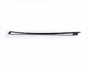 La bacchetta, a sezione rotonda, è in pernambuco con venatura fitta di color marrone chiaro, molto simile al tipo di legno che usò E. Pajeot nei suoi archi (non è che uno dei punti di contatto che ebbero N. Maire ed E. Pajeot). La punta della scarpetta è mancante. Al momento non vi è alcuna fasciatura. Il nasetto, molto interessante, è in ebano con occhio di madreperla (mm 7,5) sui fianchi ed è montato in nickel. La slitta è in nickel fissata con due perni. Il bottone, di epoca posteriore, è in nickel con occhio (al momento mancante) sulla testata. Non vi è alcun timbro.