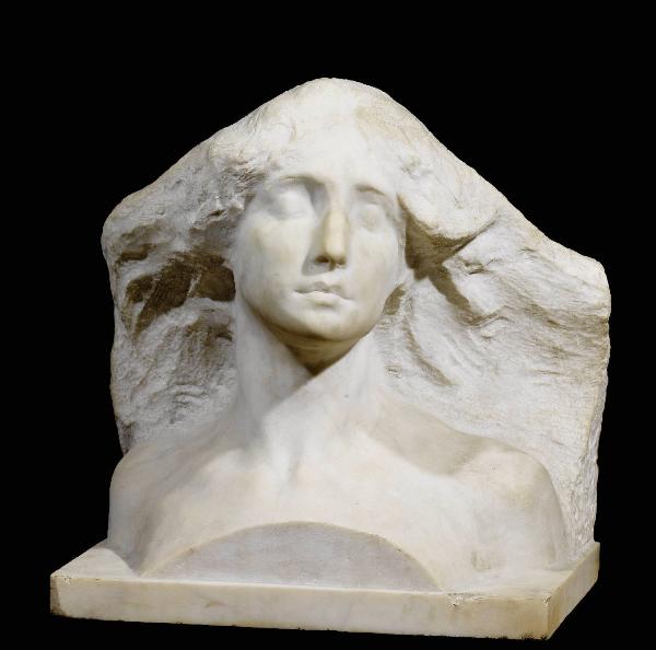 Mezzobusto femminile con il volto leggermente girato verso sinistra. La donna è rappresentata con gli occhi chiusi.