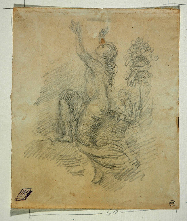 Studio per figura femminile (Clizia?), a matita su carta bianca ingiallita.