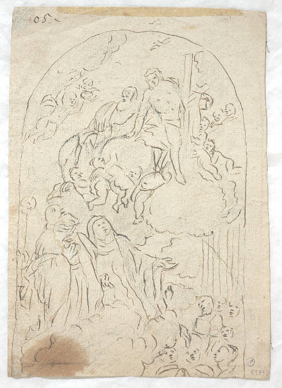 Scena sacra con Cristo, Padre Eterno, angeli e santi