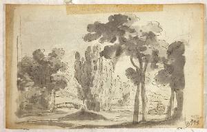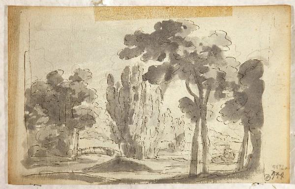 Scena raffigurante un bosco con un ponticello. PAESAGGIO