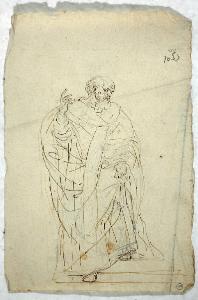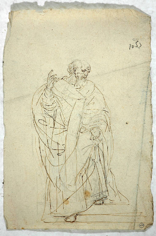 - NOTIZIE STORICO CRITICHE Il personaggio raffigurato potrebbe essere letto come come un filosofo considerando il totolo di pergamena che reca in mano. Mostra i caratteri consueti delle opere realizzate da Paolo Emilio Morgari, ravvisati anche negli altri numerosi disegni della Raccolta Lampugnani, ed è da porre in relazione con il disegno di cui alla scheda 00642407.