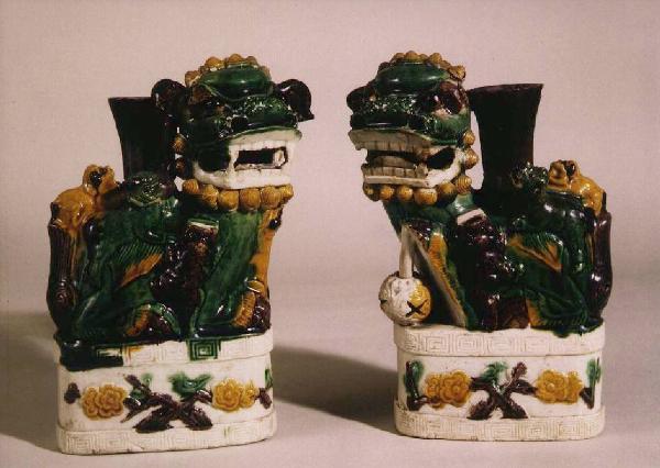 Leone sostenuto da piedistallo ovale reca sul dorso una bocchetta per l'incenso. Gli occhi e le orecchie sono mobili