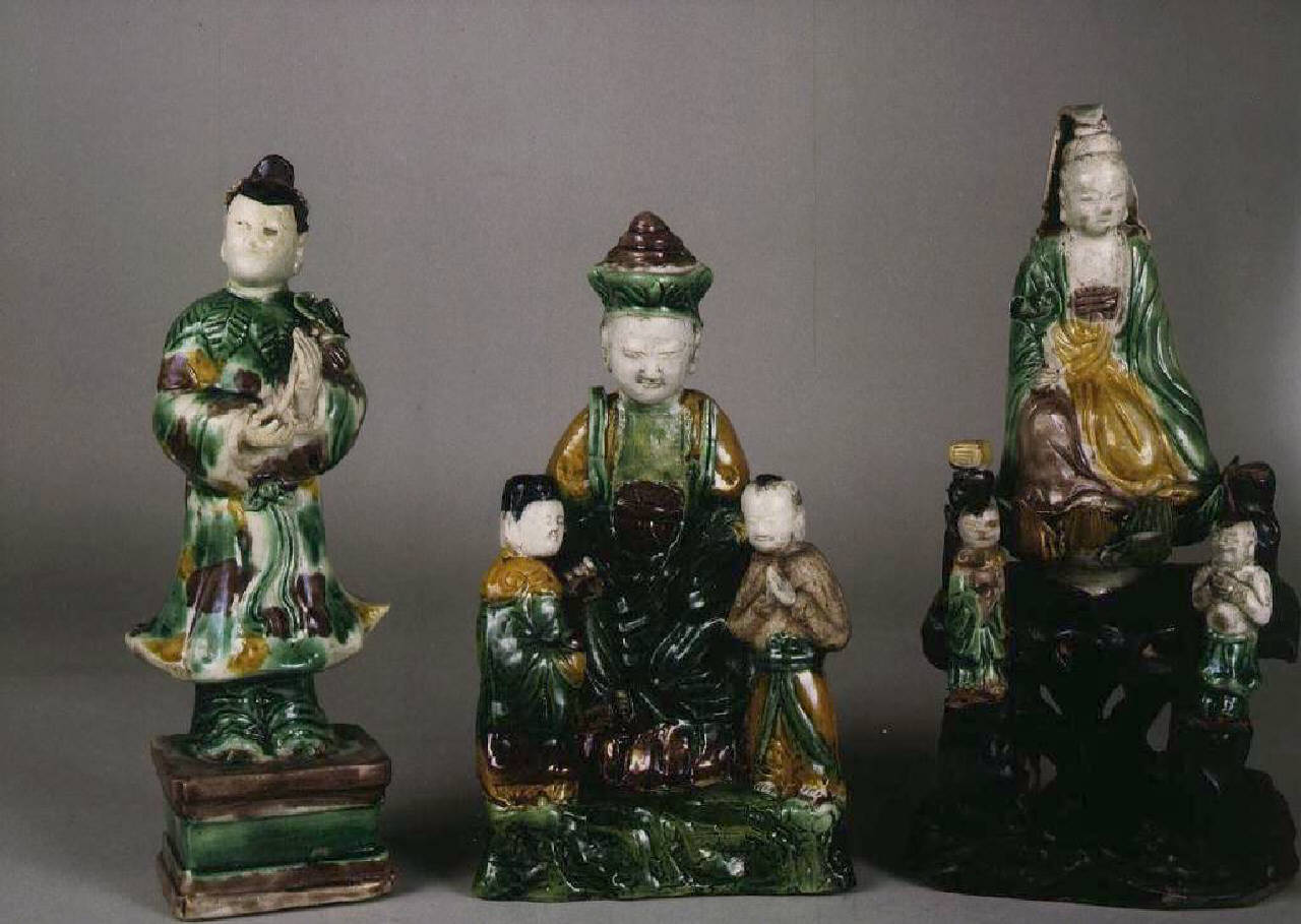 Guanyin su fiore di loto con due accoliti