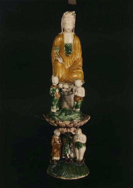 - NOTIZIE STORICO CRITICHE Dinastia Qing, era Kangxi (1662-1722).\nL'accostamento dei pezzi non è originale.\nNumero in matita sul retro di Guanyn "60".\nNumero in rosso all'interno della base grande "57".\nSotheby's 1980, 1985: "Precedentemente nella Collezione Ionides, n.57"