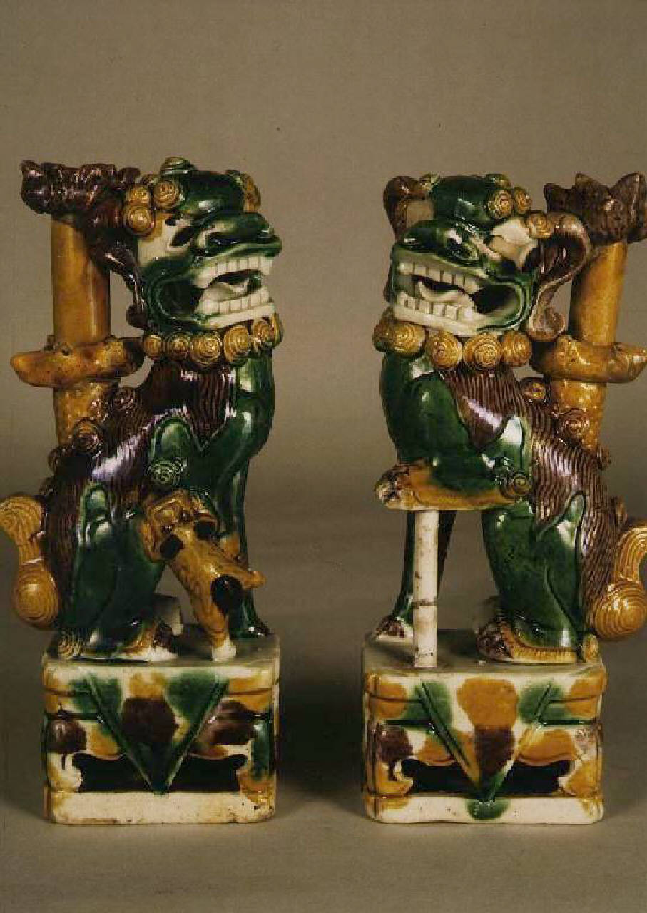 Il leone poggia su un piedistallo rettangolare e reca sul dorso una bocchetta per l'incenso