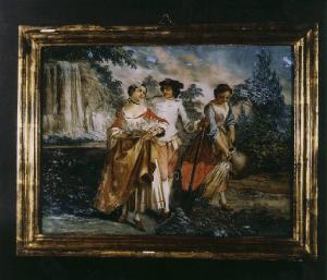 Tre figure in un giardino fiorito (allegoria della primavera?)