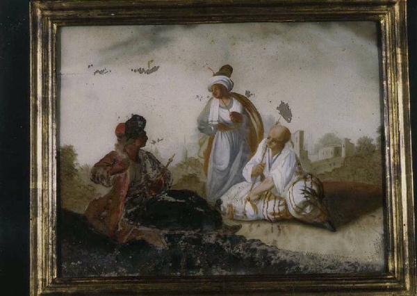 Tre uomini vestiti all'orientale (scena turchesca?)
