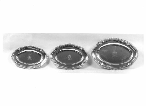 Corpo ovale con bordo sagomato e cordonato. Stemma centrale