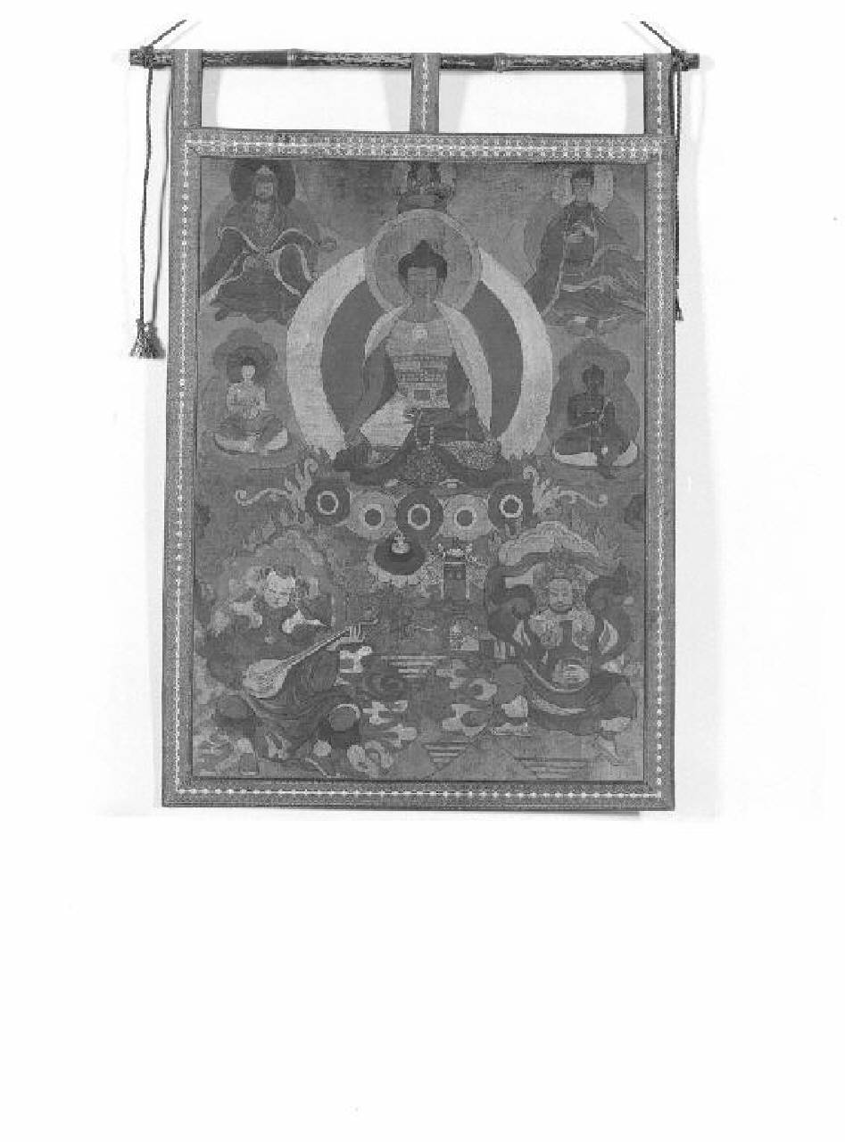 Il dipinto è montato su cartone e incorniciato con una fettuccia verde, tre sostegni in fettuccia lo ancorano a un supporto di bambù cui è attaccata la corda
