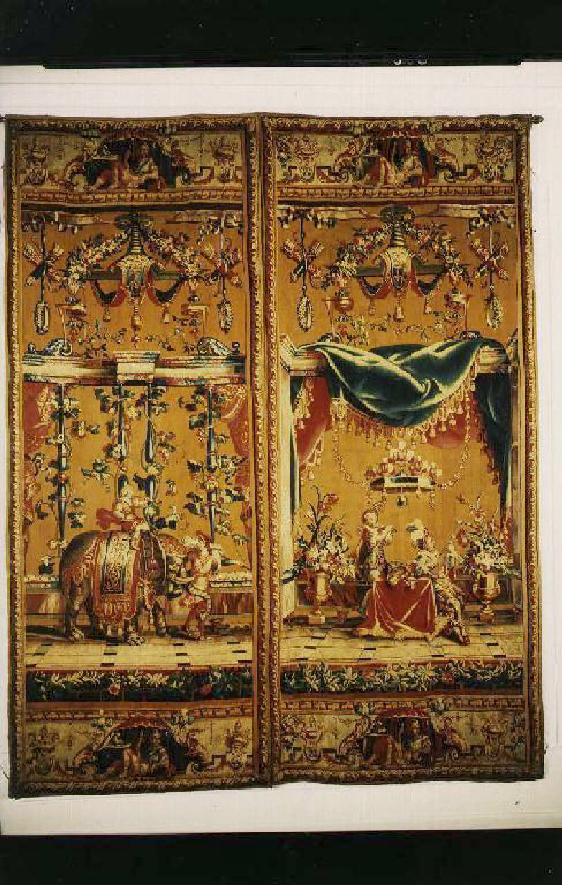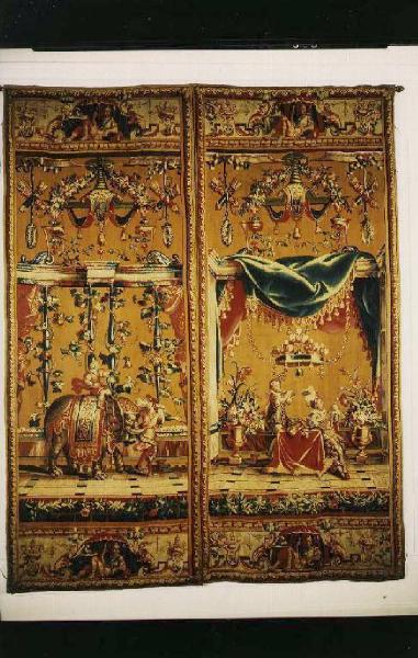 L'oggetto appartiene a un insieme di tre arazzi, realizzati dalla manifattura di Beauvais tra la fine del XVII e l'inizio del XVIII secolo. Raffiguranti soggetti orientali, appartengono alla serie "Les Grotesque des Dieux Chinois".