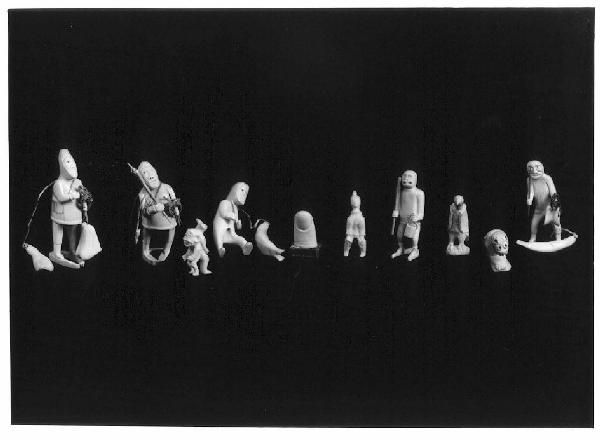 I cordini sono in pelle. La lancia è in legno con la punta in avorio.