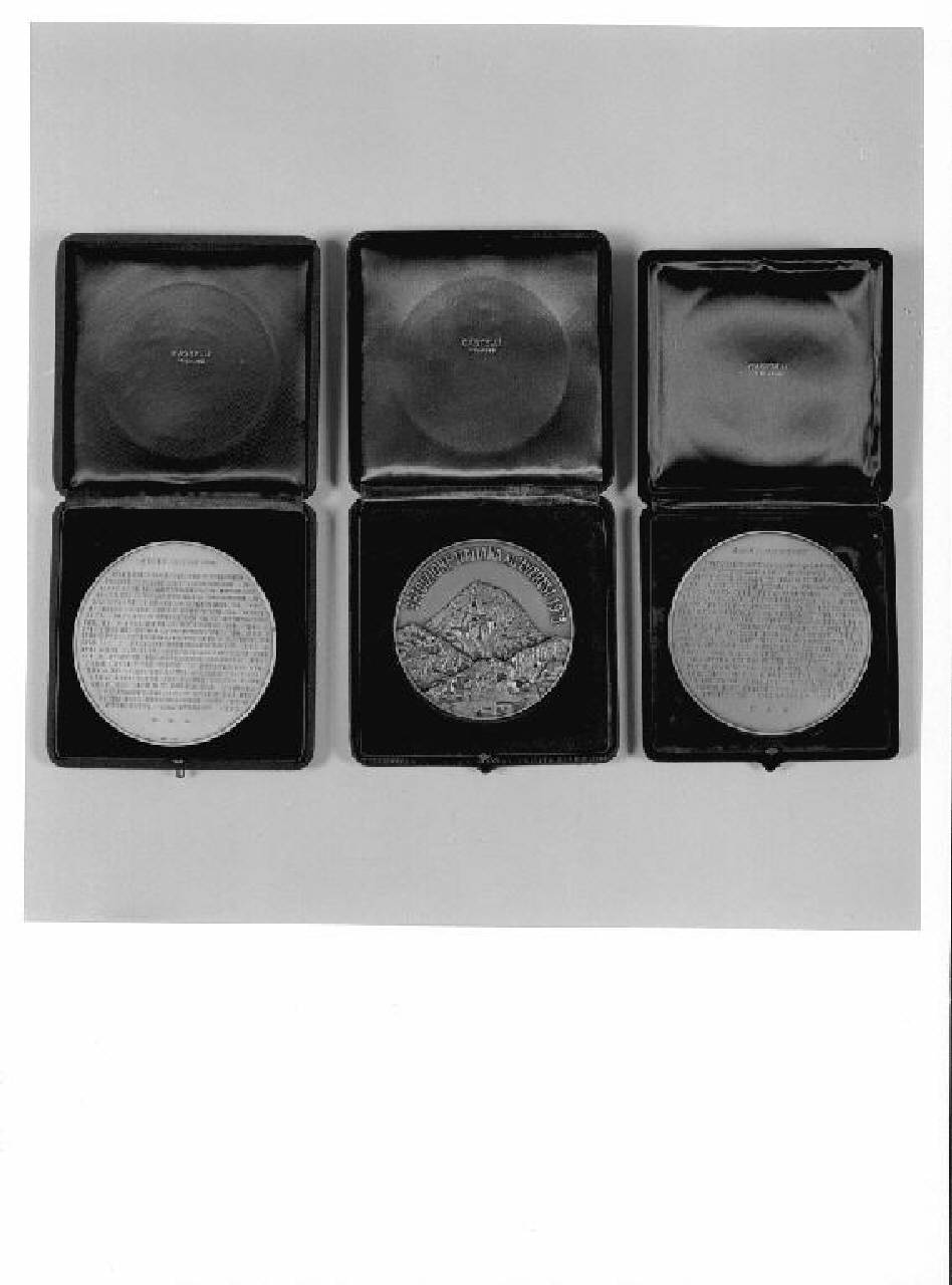 La targa è inserita in una cornice di velluto blu entro un cofanetto di plastica di colore blu. L'interno della chiusura del cofanetto è di raso blu.