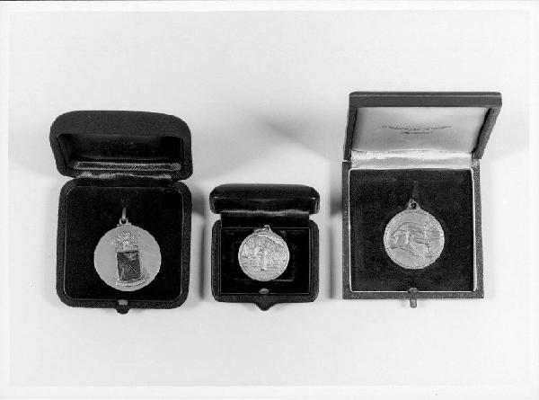 La medaglia è inserita in una cornice di velluto blu entro un cofanetto di plastica di colore blu. L'interno della chiusura del cofanetto è di raso bianco. La medaglia è attaccata ad un piccolo gancio in oro.