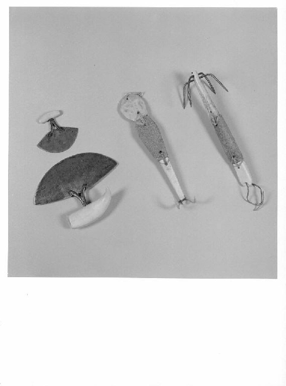 - NOTIZIE STORICO CRITICHE Coltello da donna, tuttora in uso. Serviva a molti lavori domestici e soprattutto alla lavorazione delle pelli di foca per la confezione degli indumenti: si raschiava la pelle per togliere le tracce di grasso o carne (operazione delicata poichè un taglio avrebbe reso la pelle inservibile). Poi la pelle veniva lavata e manipolata per ottenere la massima morbidezza, successivamente la si immergeva in un bagno di acqua e urina per facilitare il distacco dei peli. Ritirata dal bagno, si procedeva a una seconda manipolazione con mani e piedi. Infine si eliminavano le asperità residue con la masticazione.\nSolitamente il manico può esserein osso o in legno; in passato l'oggetto era interamente di pietra.