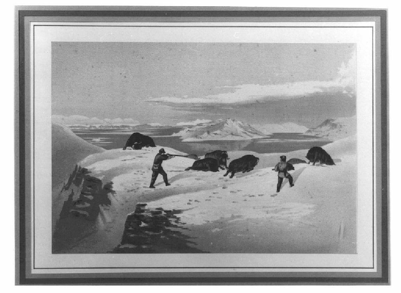 paesaggio polare con cacciatori di bufali.