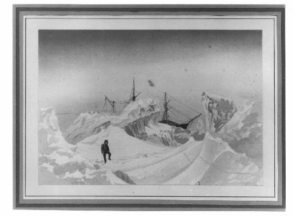 paesaggio polare con figura antropomorfa e nave.