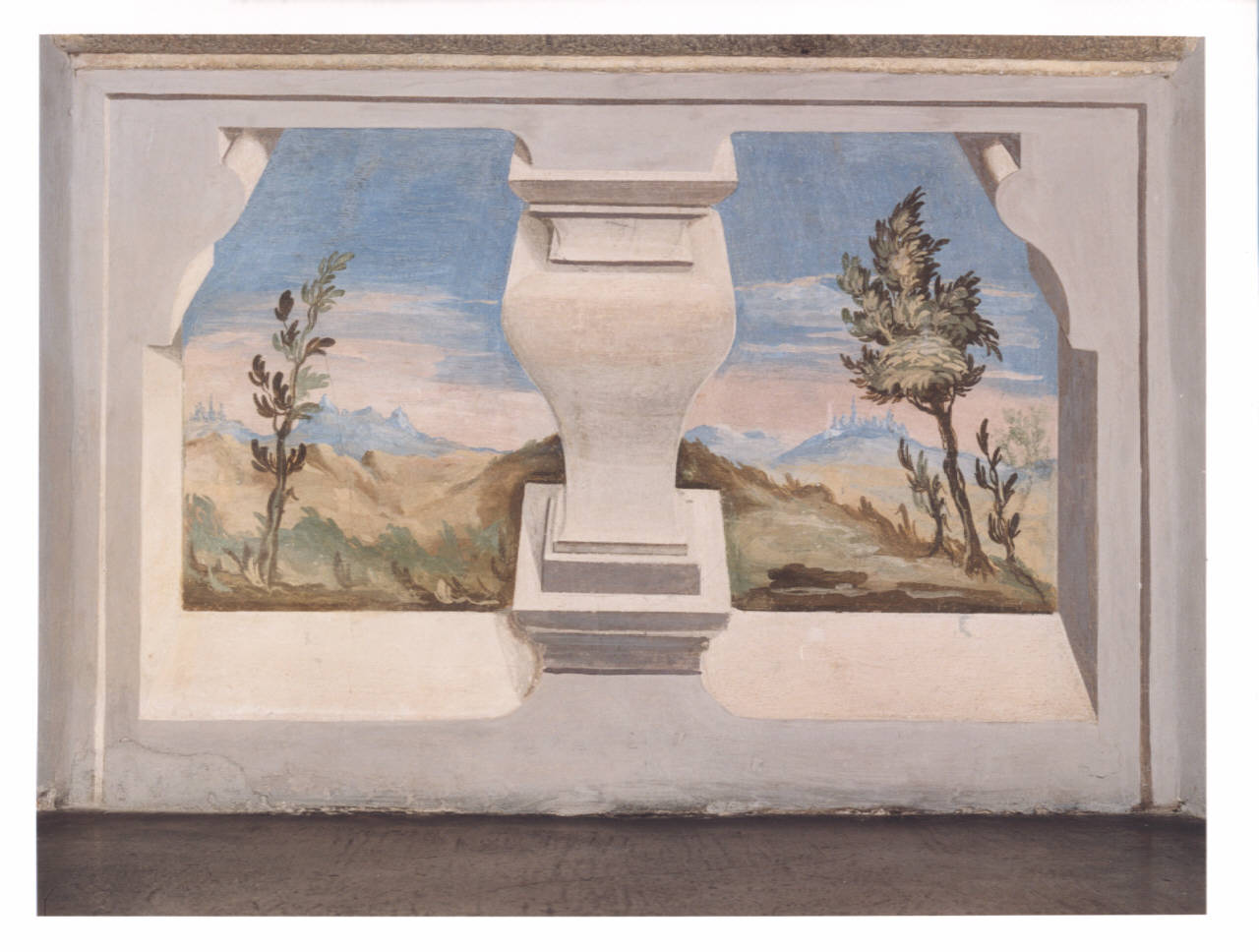 - NOTIZIE STORICO CRITICHE Affresco a tema paesaggistico. Il repertorio utilizzato è piuttosto ordinario, anche se piacevole nel suo complesso.