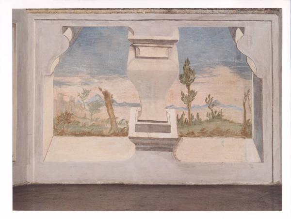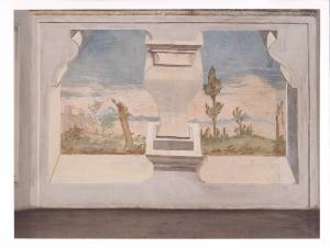- NOTIZIE STORICO CRITICHE Affresco a tema paesaggistico. Il repertorio utilizzato è piuttosto ordinario, anche se piacevole nel suo complesso.