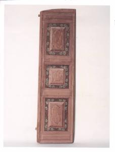 Scuri in legno dipinti a tempera rosa con decoro floreale.