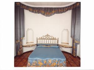 Letto a due piazze in ottone dorato con semplice testiera a ricciolo.