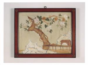 - NOTIZIE STORICO CRITICHE Il dipinto, già nella collezione delle sorelle Gigina e Nedda Necchi, entra a far parte del patrimonio FAI nel 2001, in quanto parte del lascito di Villa Necchi Campiglio a Milano. L'opera è riconducibile a una produzione giapponese. La tradizione di rappresentare dettagli di questo genere è tipica del rapporto intimo tra il popolo giapponese e la natura: ogni elemento, anche il più piccolo è carico della presenza del divino. Il genere del Kachoga ("pittura di fiori e di uccelli") si estende poco alla volta a tutto il mondo della natura (parrebbe qui essere rappresentato un albero di crisantemi e peonie, botanicamente impossibile), dove l'uomo appare come un timido protagonista o non appare affatto, come nel caso dell'opera a pendant di quella in esame. Il Kachoga era un genere tanto diffuso anche perché di facile utilizzo: ornava le case come elemento quotidiano per la leggerezza e decoratività delle loro composizioni. Il racconto gioca tra natura e tempo utilizzando degli elementi della prima spesso per raccontare il mutare del secondo, come in questo caso dove la neve sembra sciogliersi per lasciare spazio a una nuova primavera. La produzione di kachoga spazia dal XVII al XX secolo, secondo tecniche mediamente tradizionali, rendendo per questo estremamente specialistica la loro datazione.