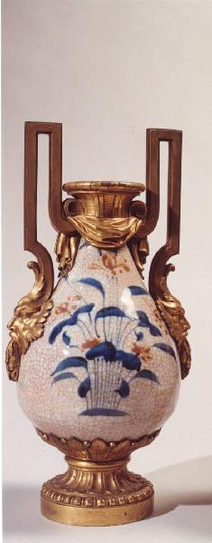 Vaso panciuto con imboccatura; base e anse in bronzo dorato.