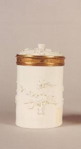 - NOTIZIE STORICO CRITICHE La Manifattura di Saint-Cloud, chiamata così dal luogo di produzione, iniziò a produrre porcellana dal 1693. Dal 1722, per i motivi decorativi, si ha una forte influenza orientale che porta a realizzare motivi floreali, anche a rilievo, in cui prevalgono i fiori di pruno, di crisantemo o decori policromi Kakiemon. Si produce anche un vasellame più impegnativo, come vasi, servizi da thè o da caffè con decori vegetali e, appunto, orientaleggianti, come i pezzi in oggetto. La fabbrica chiude nel 1766 per motivi economici.\nIl manufatto in precedenza si trovava nel piano seminterrato di Villa Necchi.