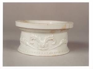 Base circolare con motivo decorativo a foglia d'acanto centrale.