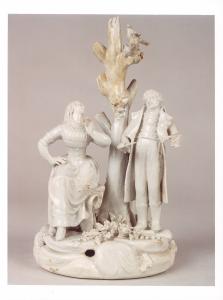 - NOTIZIE STORICO CRITICHE La manifattura Le Nove, vicino a Bassano, nacque nel 1752 per volontà di Pasquale Antonibon, già proprietario di una fiorente fabbrica di maioliche. Ebbe sorti altalenanti a causa della malattia del fondatore che delle diserzioni degli operai, riuscendo comunque a produrre eccellenti porcellane fino al 1800. La produzione di piccole figure si colloca intorno agli anni della fine del settecento, con modelli molto simili fra loro per il riutilizzo di stessi identici stampi, per cui le variazioni erano affidate soprattutto ai panneggi.\nIl gruppo scultoreo in precedenza si trovava nel piano seminterrato.