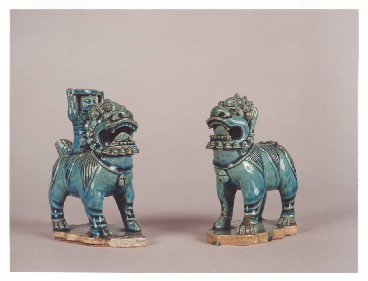 - NOTIZIE STORICO CRITICHE L'uso della vernice turchese si incontra per la prima volta in Cina nel XIV secolo. Essa diventerà molto popolare sotto i Ming; verso la fine del XVII secolo, sotto la dinastica Ts'ing, si giungerà a una tonalità più azzurra e intensa, come suggeriscono i due pezzi in esame.