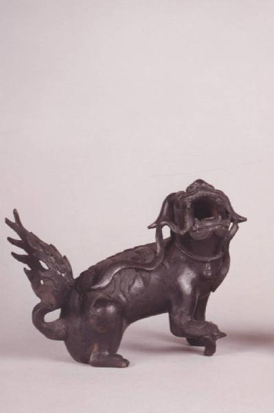- NOTIZIE STORICO CRITICHE La scultura raffigura un leone cinese "karashishi", simbolo del coraggio e della vittoria: questo "animale" ha origini esotiche d'indole regale, noto attraverso il Buddismo.\nIn precedenza l'opera si trovava al piano terra, Veranda, parete verso il salone, a sinistra della porta d'ingresso, sopra lo stipo.