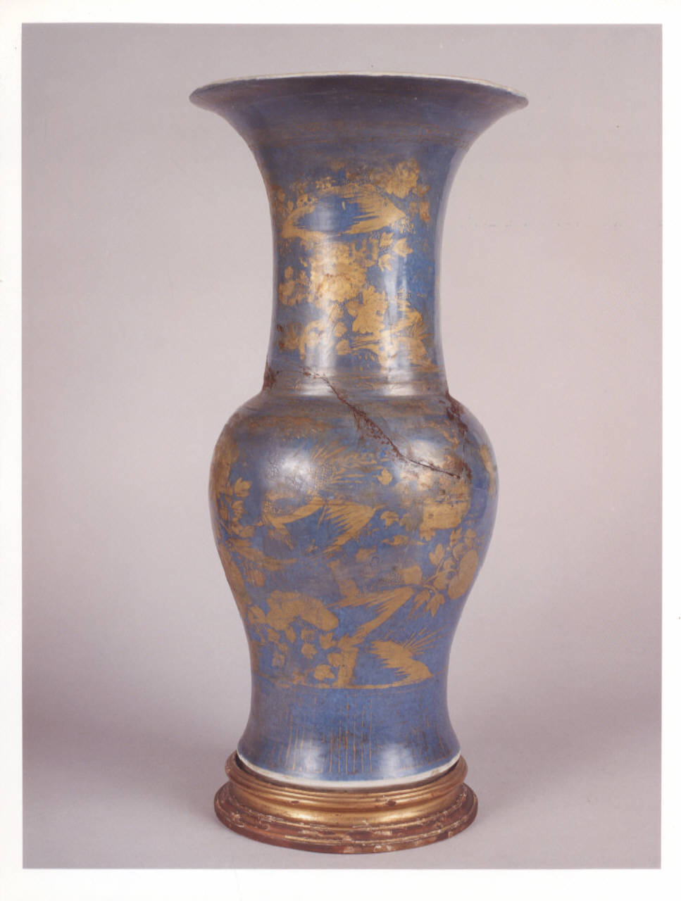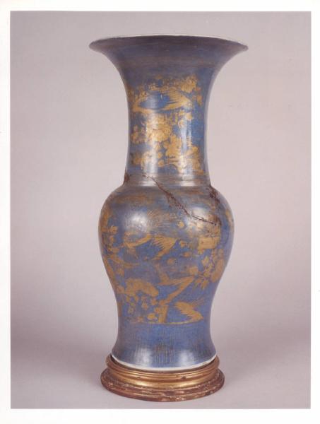 - NOTIZIE STORICO CRITICHE Il vaso fa parte delle porcellane blu "incipriate" o "soffiate" che servono da fondo a un decoro in oro. Questa particolare tipologia, cioè il blu sottocoperta associato all'oro, da origine agli Imari cinesi, che sono delle imitazioni delle porcellane giapponesi destinate all'esportazione.